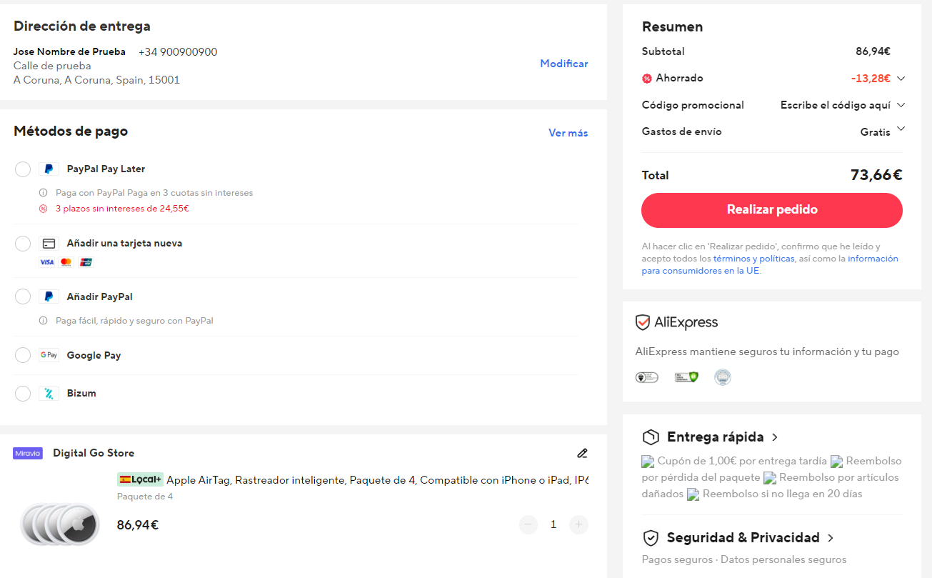 Disponible a 73.66€ en Aliexpress aplicando código IFPFFIMU (captura). Más barato que en Amazon a 105€ o en Apple a 129€.