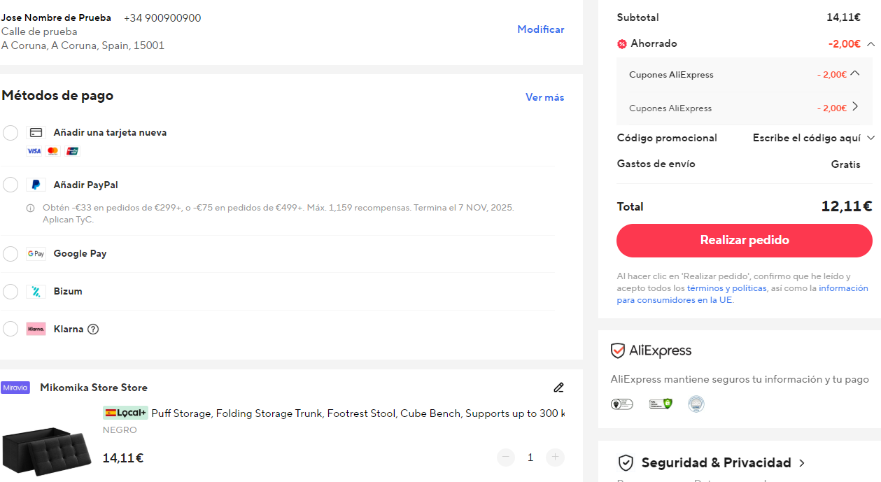 Disponible a 12.1€ en Aliexpress aplicando código ESCD02 (captura). . Más barato que en otras tiendas, como por ejemplo en Amazon a 39.99€.