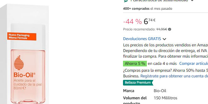 60ml Bio-Oil: Aceite para cicatrices y estrías con eficacia clínicamente probada ►6.7€