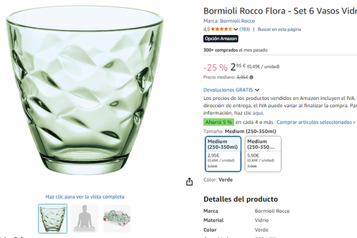 6 vasos de cristal 26cl Bormioli ►2.9€ en Amazon