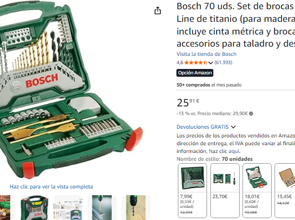 Suelen estar entre los juegos de brocas más vendidos de Amazon, acumulando en esta versión bastantes opiniones, en su mayoría con valoraciones de 5 sobre 5 estrellas. En ellas se suele destacar su excelente relación calidad / precio y la gran variedad de accesorios incluidos.