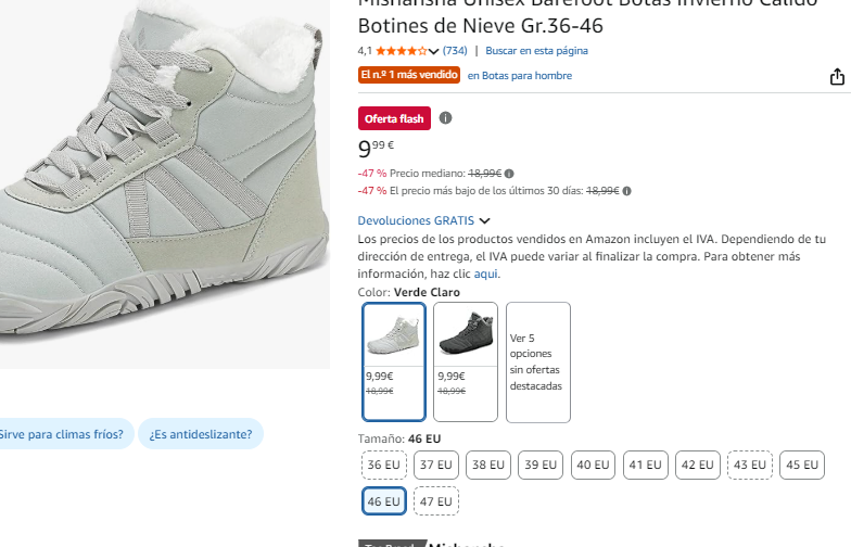 Chollo de hace 34 días, el precio quizá cambió. En Telegram hay nuevos.CerrarMishansha Barefoot son unas botas de invierno unisex que unen la libertad del calzado minimalista con la protección térmica necesaria para los días más fríos. Forradas completamente con felpa de alta calidad, estas botas mantienen los pies cálidos y secos gracias a su capacidad para absorber la humedad sin agobiar, ofreciendo una sensación suave y esponjosa desde el primer uso.
