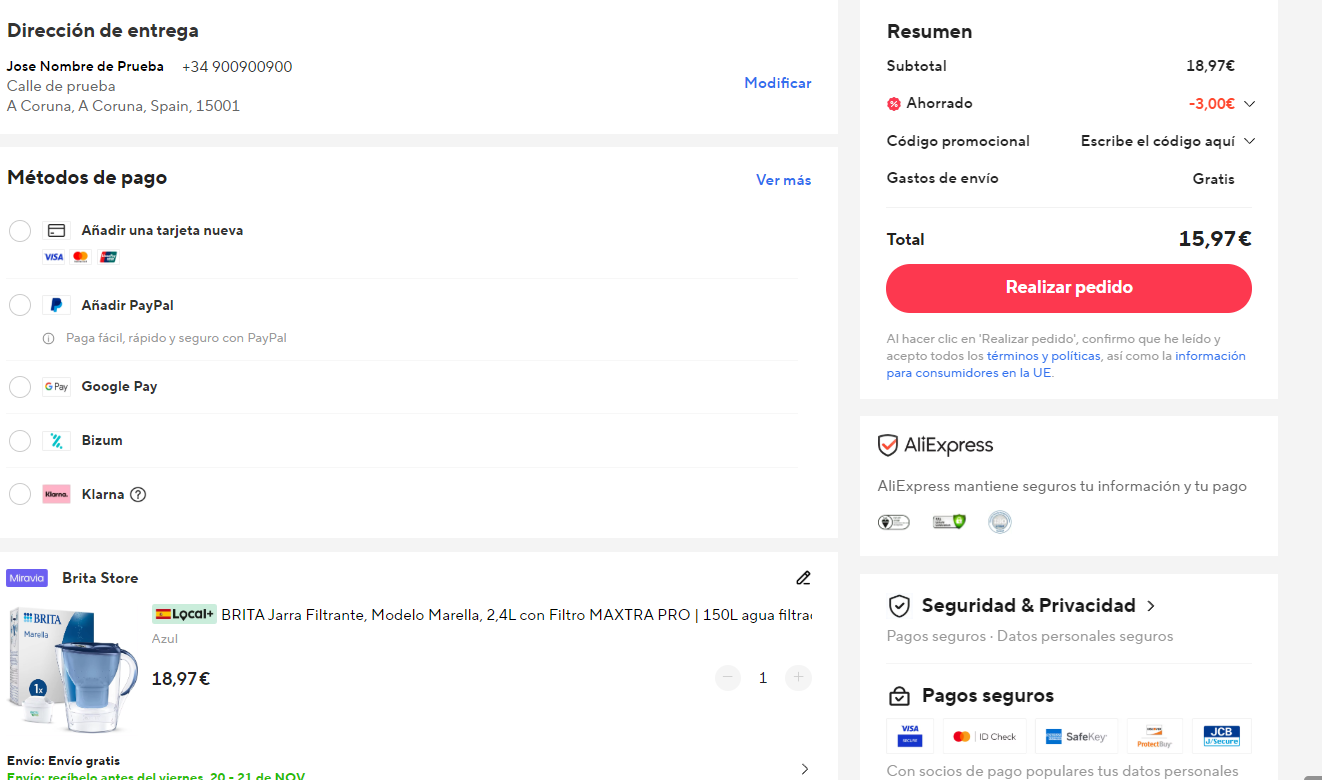Disponible a 15.97€ en Aliexpress aplicando código ESAE03 (captura). Más barato que en otras tiendas, como por ejemplo en Amazon a 26.5€.