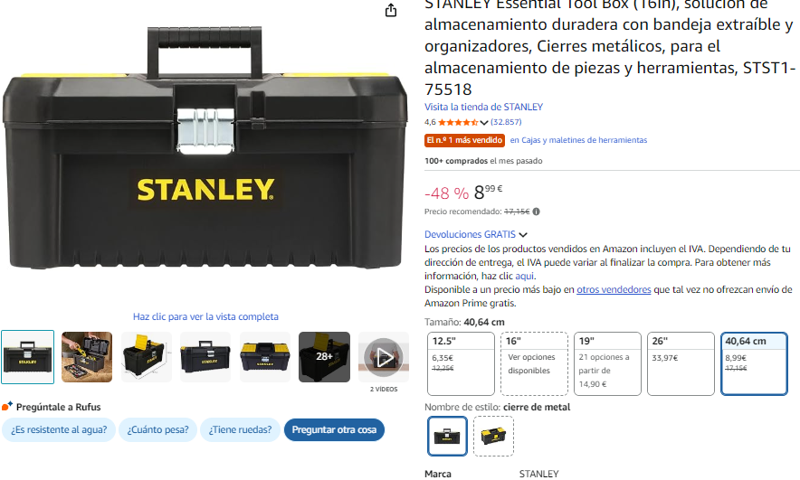 Es una de las cajas de herramientas más vendidas de Amazon, acumulando más de 280 opiniones, en su mayoría con una valoración de 5 sobre 5 estrellas. En ellas se suele destacar su excelente construcción de plástico resistente y tamaño manejable.