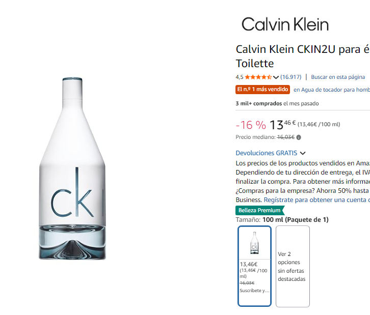 Disponible frasco de 100ml a 13.46€ en Amazon (captura). Más barato que en El Corte Inglés a 24.95€ (100ml) .