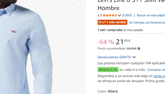 Es una de las camisas más vendidas de Amazon, acumulando miles de opiniones, la inmensa mayoría de la máxima valoración, en ellas se suele destacar que sienta muy bien y su tejido parece de muy alta durabilidad.