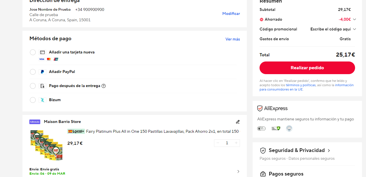 Disponible a 25.17€ (0.17€ / dosis) en Aliexpress aplicando código CDES04 (captura) . Más barato por unidad que en otras tiendas, por ejemplo en Amazon a 0.34€ / dosis..