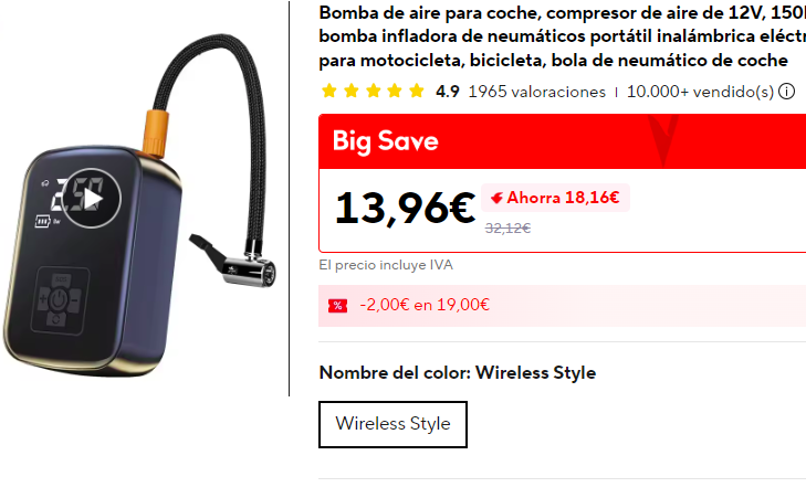 Compresor de aire con batería recargable USB - control digital de presión ►13.96€ con envío