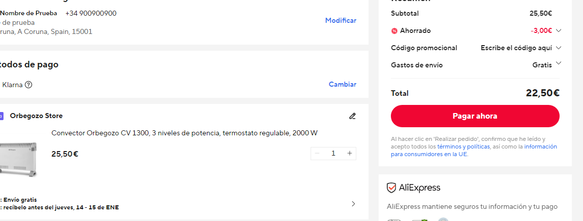 Disponible a 22.5€ en Aliexpress aplicando código MES03 (captura). Más barato que en Amazon a 24.56€.