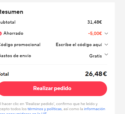 Disponible a 26.48€ en Aliexpress aplicando código ESAE05 (captura) . Más barato que en PcComponentes a 52.8€ o en Miravia a 41.99€.