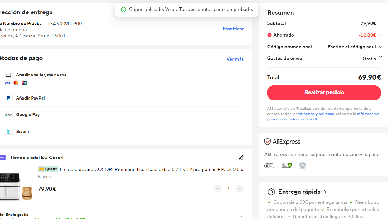 Disponible a 64.99€ en Miravia marcando cupón (¿cómo marcarlo?) y también a 69.98€ en Aliexpress aplicando código ESCD10 (captura) . Más barato que en Amazon versión más pequeña a 84.99€ .