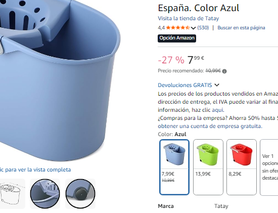 Es uno de los cubos de limpieza con ruedas más vendidos de Amazon, acumulando cientos de opiniones, en su mayoría con valoraciones de 5 sobre 5 estrellas. En ellas se suele destacar que su diseño es duradero y muy práctico de usar gracias a sus ruedas.