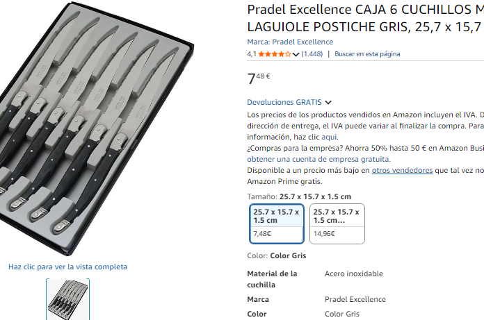 6 cuchillos de mesa con hoja 11cm Pradel Excellence ►7.48€ (1.2€ / ud.) en Amazon