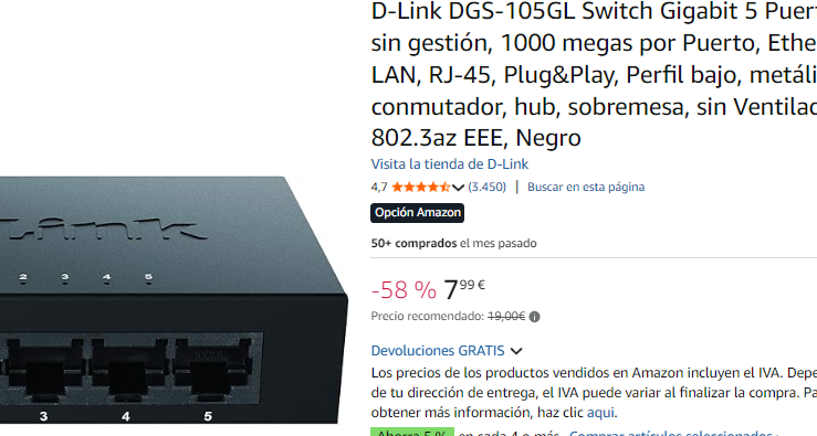 Switch D-Link metálico - 5 puertos gigabit ethernet