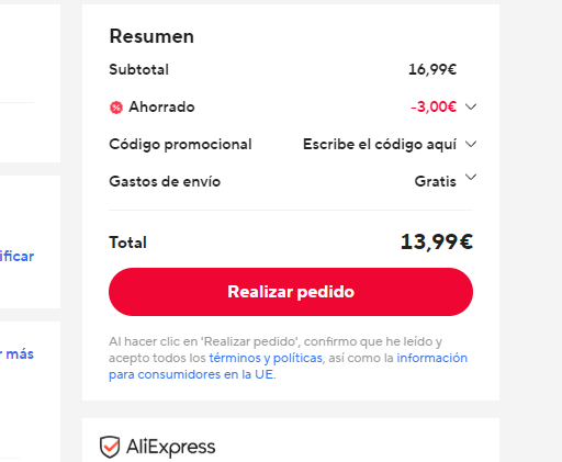 Disponible a 13.99€ en Aliexpress aplicando código CMES03 o ESAS03 (captura). Más barato que en otras tiendas, como por ejemplo en Amazon a 19.99€.