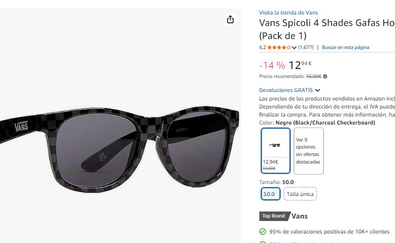 Disponible a 12.9€ en Amazon (captura). Más barato que en otras tiendas, como por ejemplo en Vans a 18€.