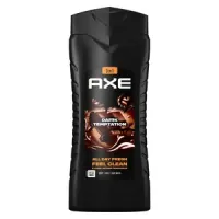 Cada bote contiene 400 ml de gel de ducha AXE Dark Temptation para cabello y cuerpo. Con fragancia masculina a chocolate amargo que dura hata 12 horas. Vale simultaneamente para cabello, cara y cuerpo.