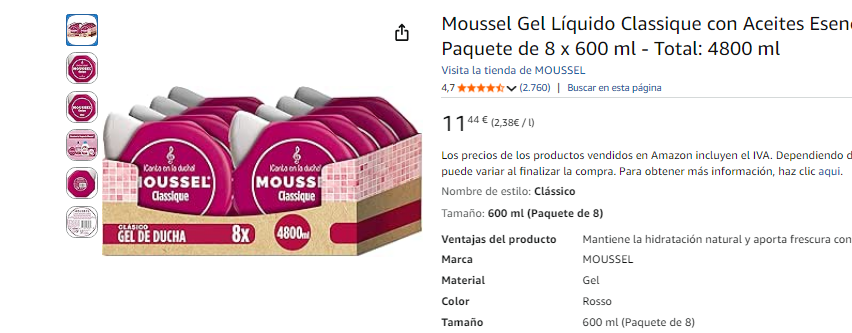 - Marca / Modelo: Gel de ducha Moussel clásico.