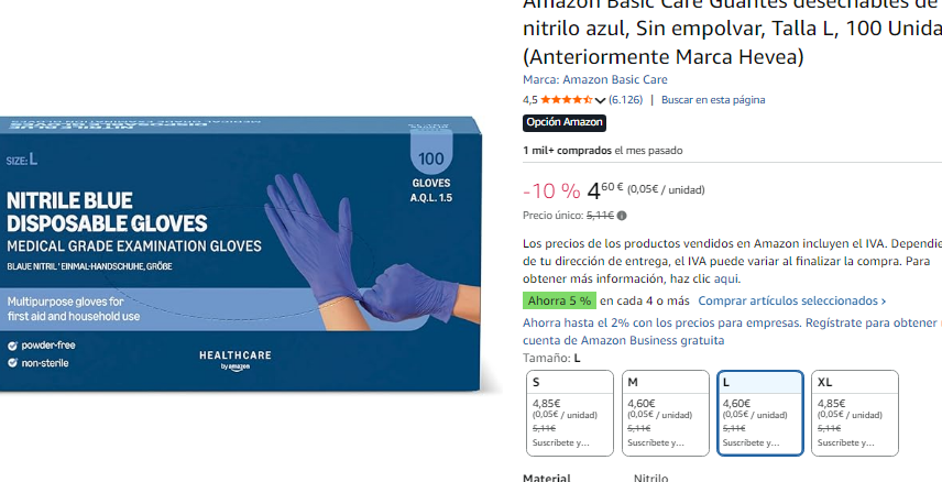 100 guantes de nitrilo AmazonBasics - sin polvo ►4.6€