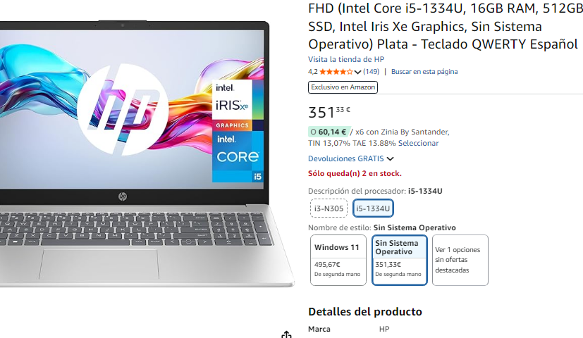 HP 15.6" FHD - 16GB RAM - i5-1334U (mejor que i7-1250U) - 512GB SSD ►351.3€ reacondicionado