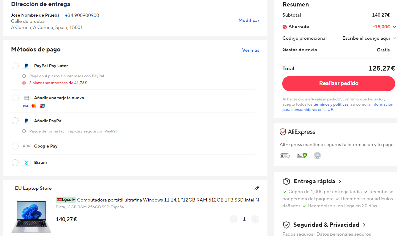 Disponible a 125.3€ en Aliexpress aplicando código FFES15 (captura). Más barato que similar con 8GB RAM a 222.99€.