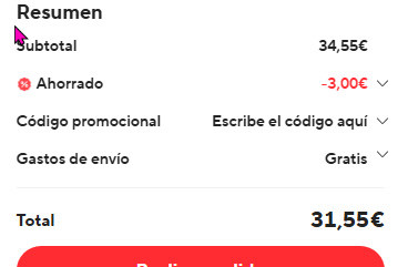 Disponible a 31.55€ en Aliexpress aplicando código MES03 (captura). Más barato que en Joma-sport a 50.99€, o en Decathlon a 45.99€.
