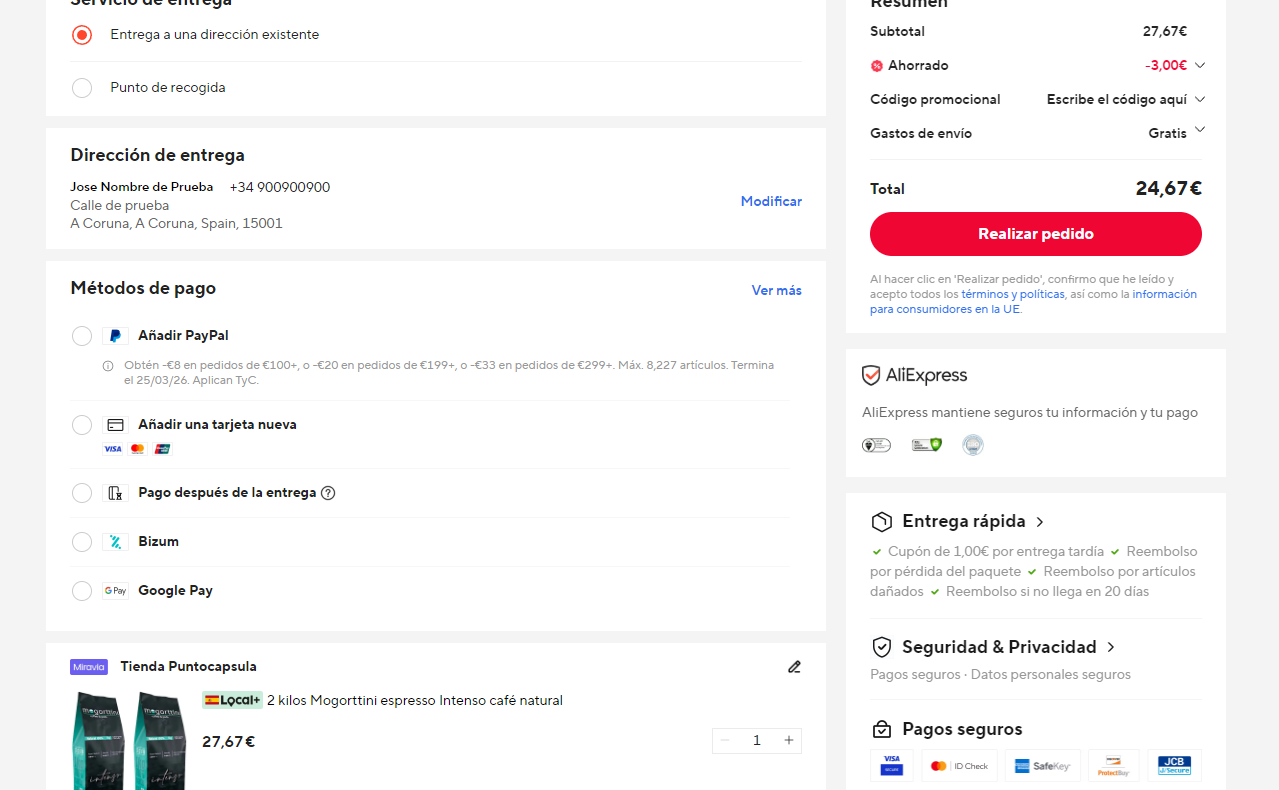 Disponible pack de 2KG, esta vez a 24.7€ (12.3€ /kg) en Aliexpress aplicando código ESAS03 (captura). Má barato que el +barato de Amazon a 12.99€ el KG.