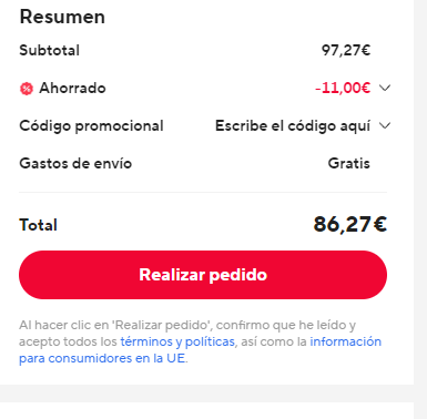 Disponible a 86.27€ en Aliexpress aplicando código ESAS11 (captura). Más barato que similar a 119.99€ aplicando cupón.