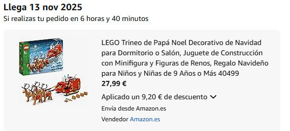 Disponible a 27.99€ en Amazon al tramitar pedido (captura). Más barato que en otras tiendas, como por ejemplo en Lego a 39.99€.