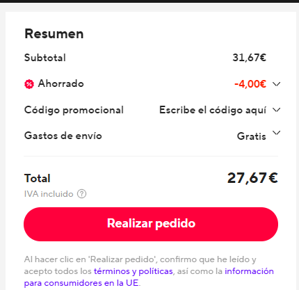 Disponible a 27.7€ en Aliexpress aplicando código ESCD04 (captura) . Más barato que en Fnac a 69.99€.