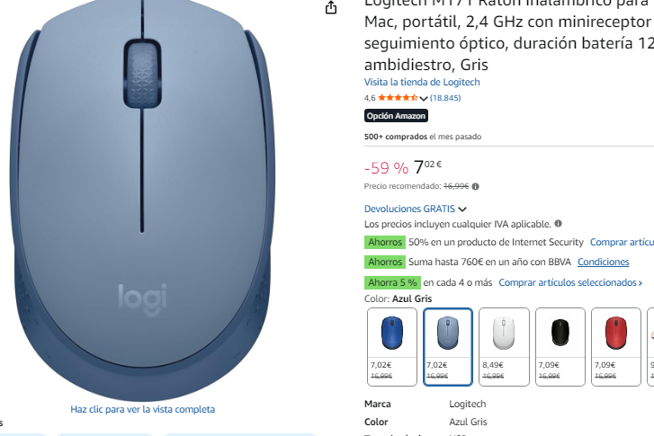 Ratón Inalámbrico Logitech M171 - silencioso ►7€ en varios colores