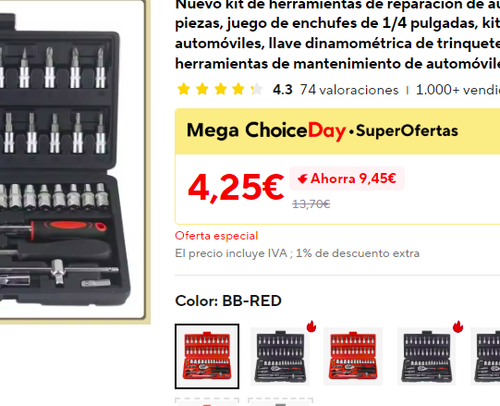 Juego de llaves de vaso con carraca, cardán, puntas de atornillar etc. ►4.25€