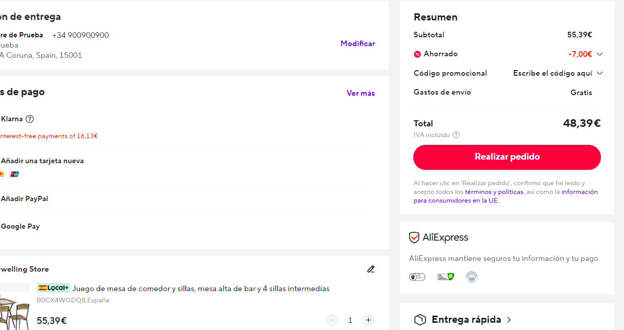 Disponible a 48.4 con envío en Aliexpress aplicando código ES1007 (captura). Más bararto que conjuntos similares a 79.99€.