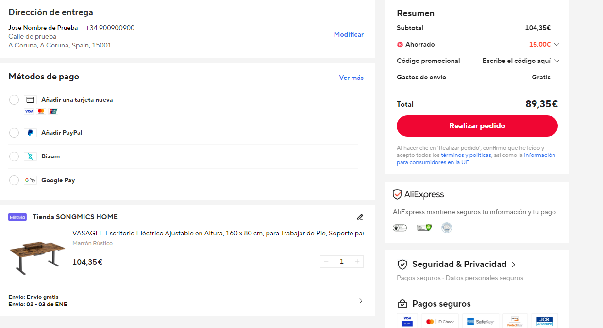 Disponible a 89.35€ en Aliexpress aplicando código MES15 (captura). Más barato que similar en Amazon a 209.99€ .