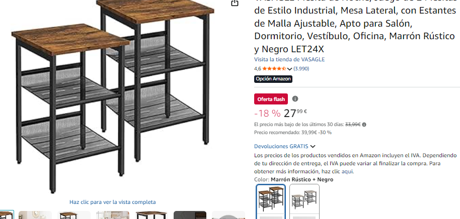 Disponible a 27.99€ (13.99€ /ud.) en Amazon (captura). Más barato que alternativa con cajones a 40.36€.