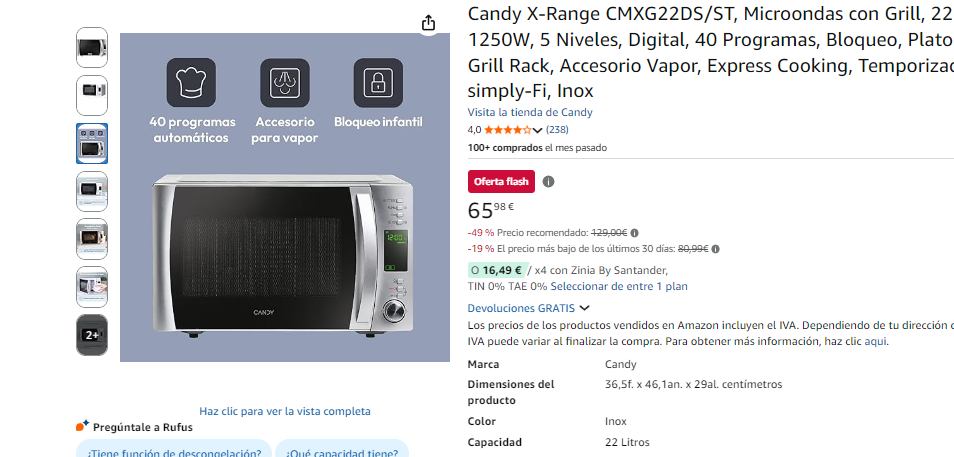 Horno Microondas Candy con Grill 1000W - 22L ►65.98€