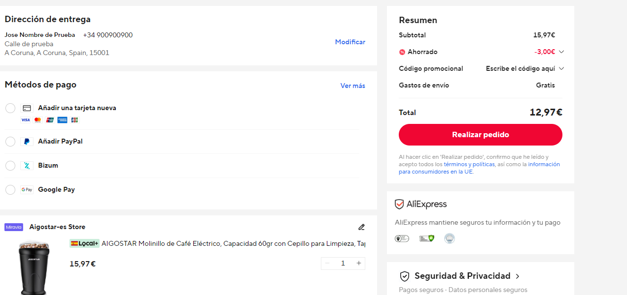 Disponible a 12.97€ en Aliexpress aplicando código AEMES03 (captura). Más barato que en Amazon a 16.2€ marcando cupón.
