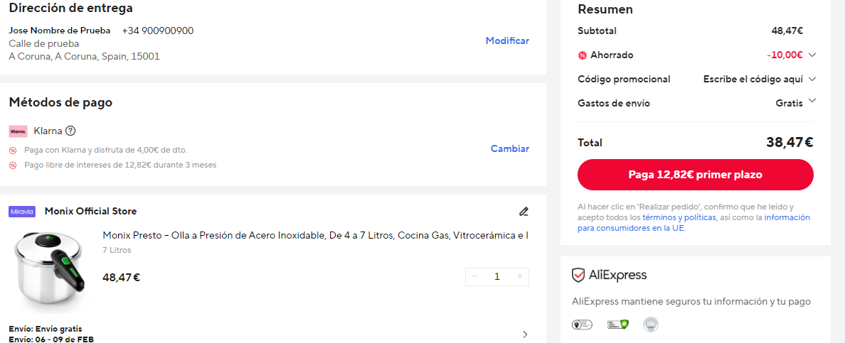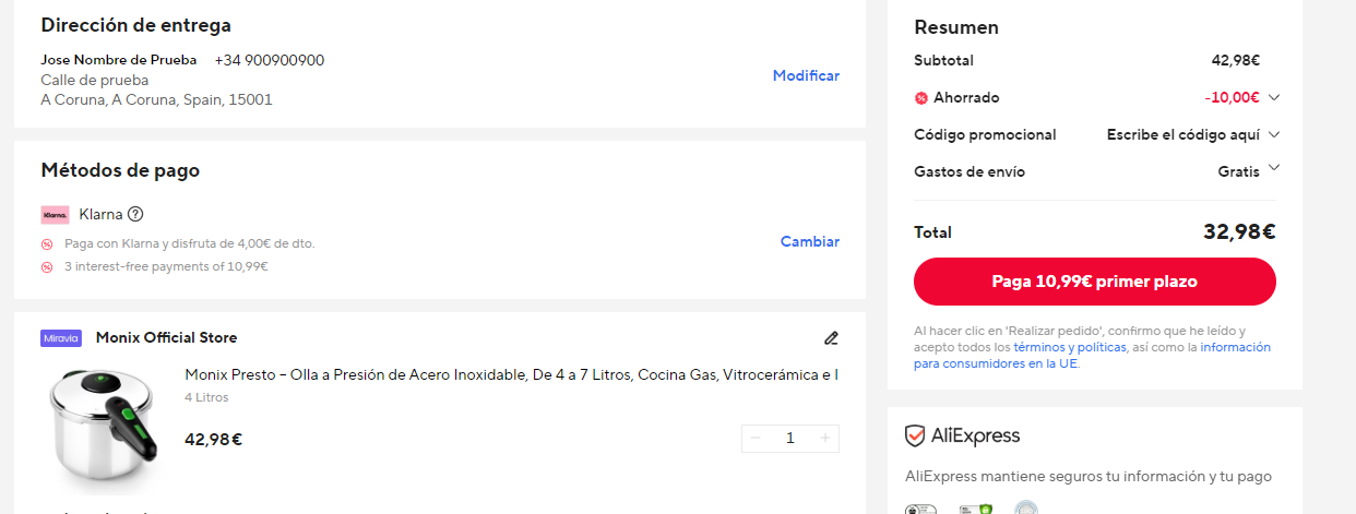 Código AEMES06 + Paga con Klarna (¿como elegir Klarna?)