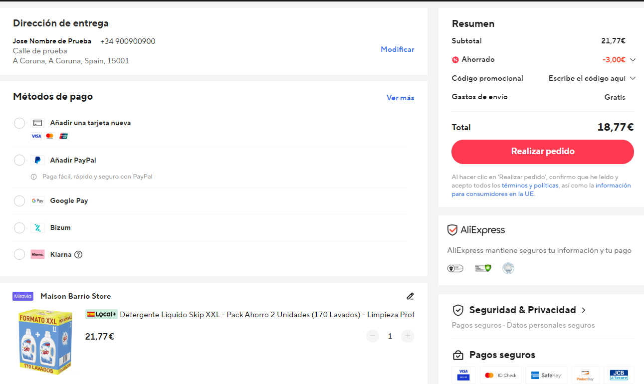 Disponible pack 170 dosis 18.77€ con envío (0.11€ /dosis) en Aliexpress aplicando código MAES03 (captura).