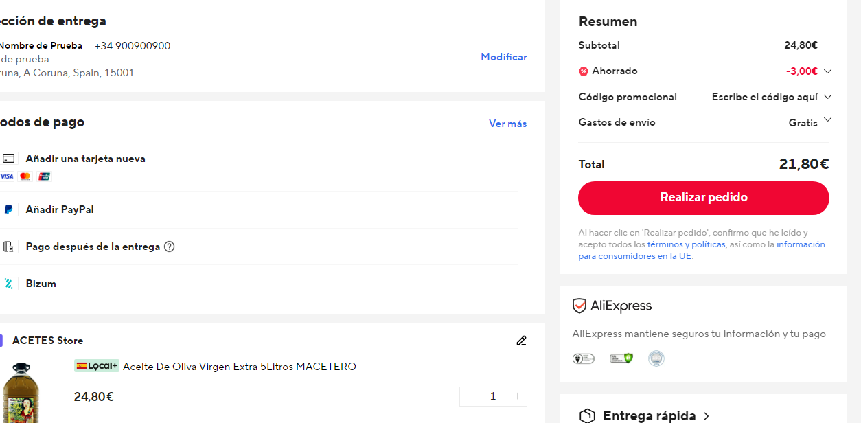 Disponible botella de 5L a 21.8€ con envío en Aliexpress aplicando código MES03 (captura) . Más barato que en Amazon a 37.6€ con envío.