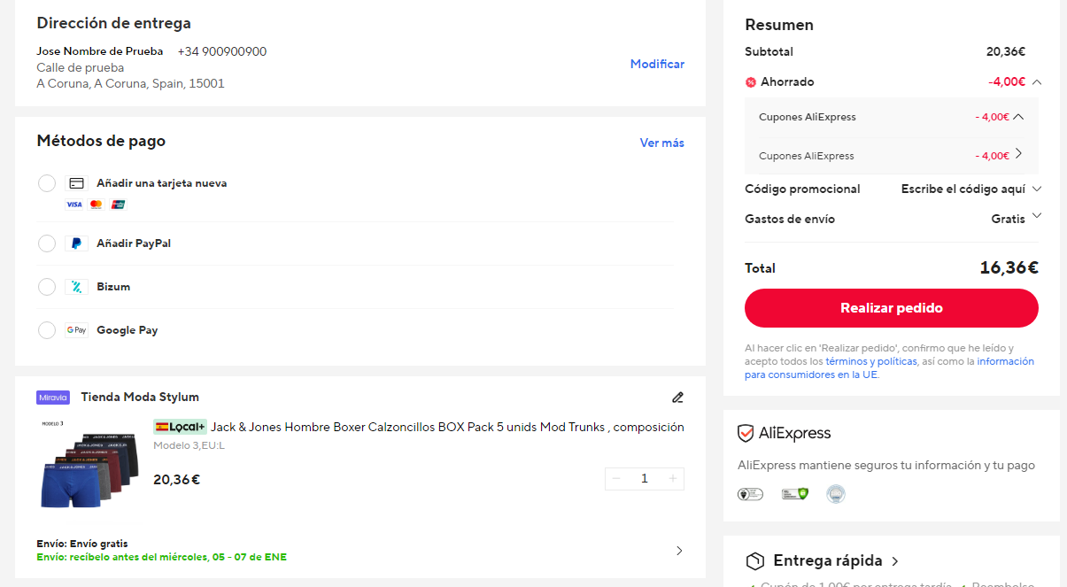 Disponible a 16.36€ en Aliexpress aplicando código AEMES04 (captura). Más barato de lo que se encuentran en otras tiendas, como por ejemplo en Amazon a 22.2€ solo en talla XXL.