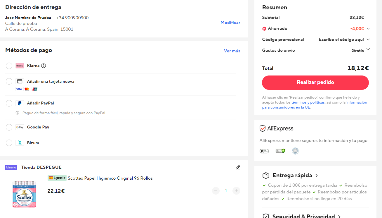 Disponible paquete de 96 rollos a 19.12€ en Aliexpress aplicando código MES03 (captura con envío gratis) . A 0.2€ por rollo, más barato que en Amazon a 26.1€ en compra recurrente y por menos por unidad que en Eroski a 0.33€ / ud. o en Ulabox a 0.4€ /ud.