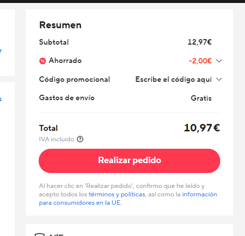 Disponible a 10.97€ en Aliexpress aplicando código ESAE02 (captura) . Más barato que similar en Amazon a 14.9€.