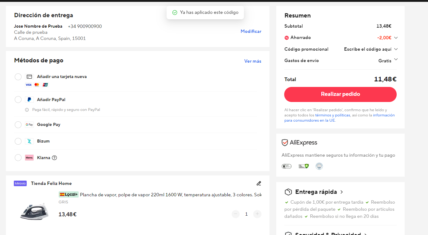 Disponible a 11.48€ en Aliexpress aplicando código ESAE02 (captura). Más barato que en otras tiendas, como por ejemplo en Amazon a 20.89€ .