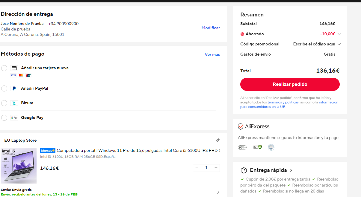 Disponible a 136.2€ en Aliexpress aplicando código ESPP10 (captura). Más barato que alternativa con mitad de ram en Amazon a 255€.
