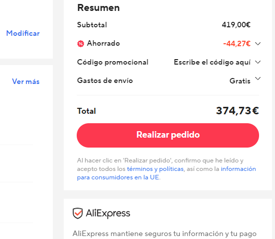 Disponible a 374.3€ sin lector en Aliexpress aplicando código IFPRYOVT (captura). Más barato que en Amazon 532.99€.
