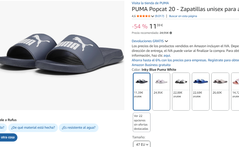 Disponible a 11.39€ en Amazon en mayoría de tallas (captura). Más barato de lo que cuestan en otras tiendas como por ejemplo en Miravia a 21.99€.