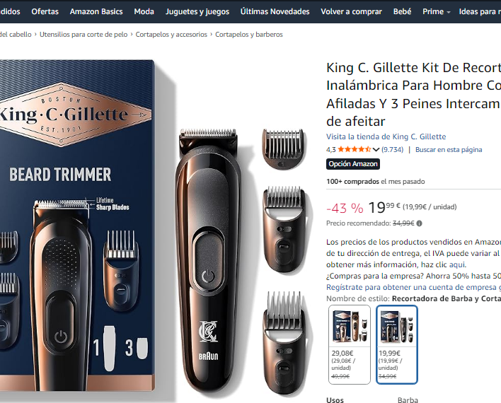 Recortadora Braun King C. Gillette - corte hasta 21mm - 50min. batería ►19.99€