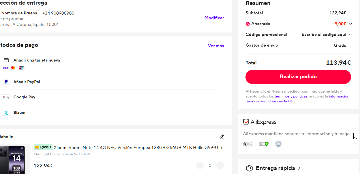 Disponible a 113.94€ en Aliexpress aplicando código ESHS009 (captura). Más barato que en otras tiendas, como por ejemplo en Amazon a 127.96€.