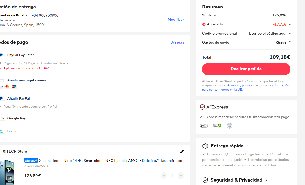 Disponible a 109.18€ en Aliexpress aplicando código IFP437S0 (captura). Más barato que en otras tiendas, como por ejemplo en Amazon a 127.96€.